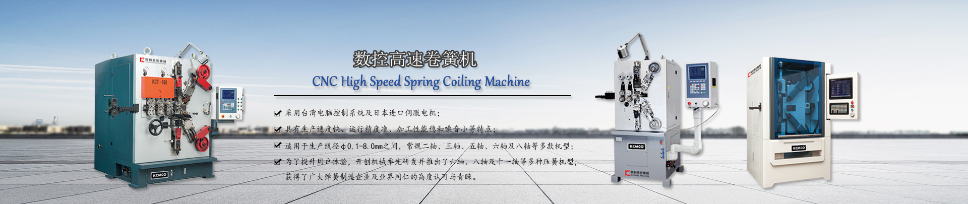 主營產(chǎn)品: 彈簧機械   全自動彈簧機   數(shù)控彈簧機   電腦彈簧機   數(shù)控高速卷簧機   數(shù)控萬能彈簧機   無凸輪彈簧機   電腦壓簧機   八爪彈簧機   轉(zhuǎn)線彈簧機   彈簧機價格
